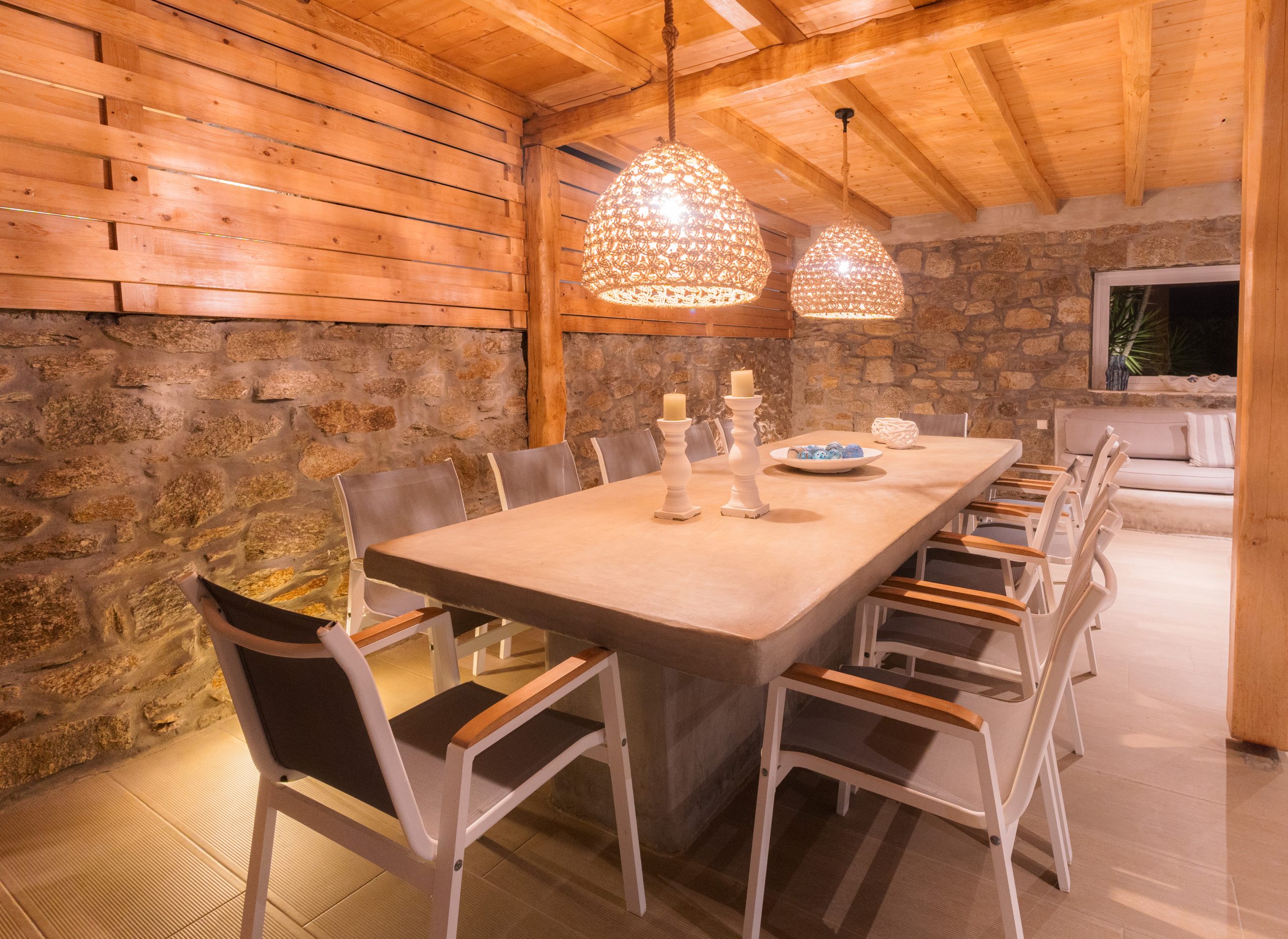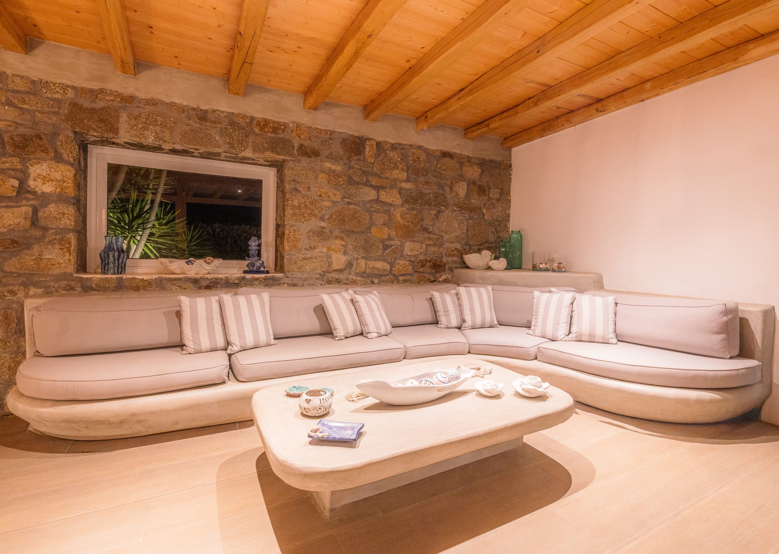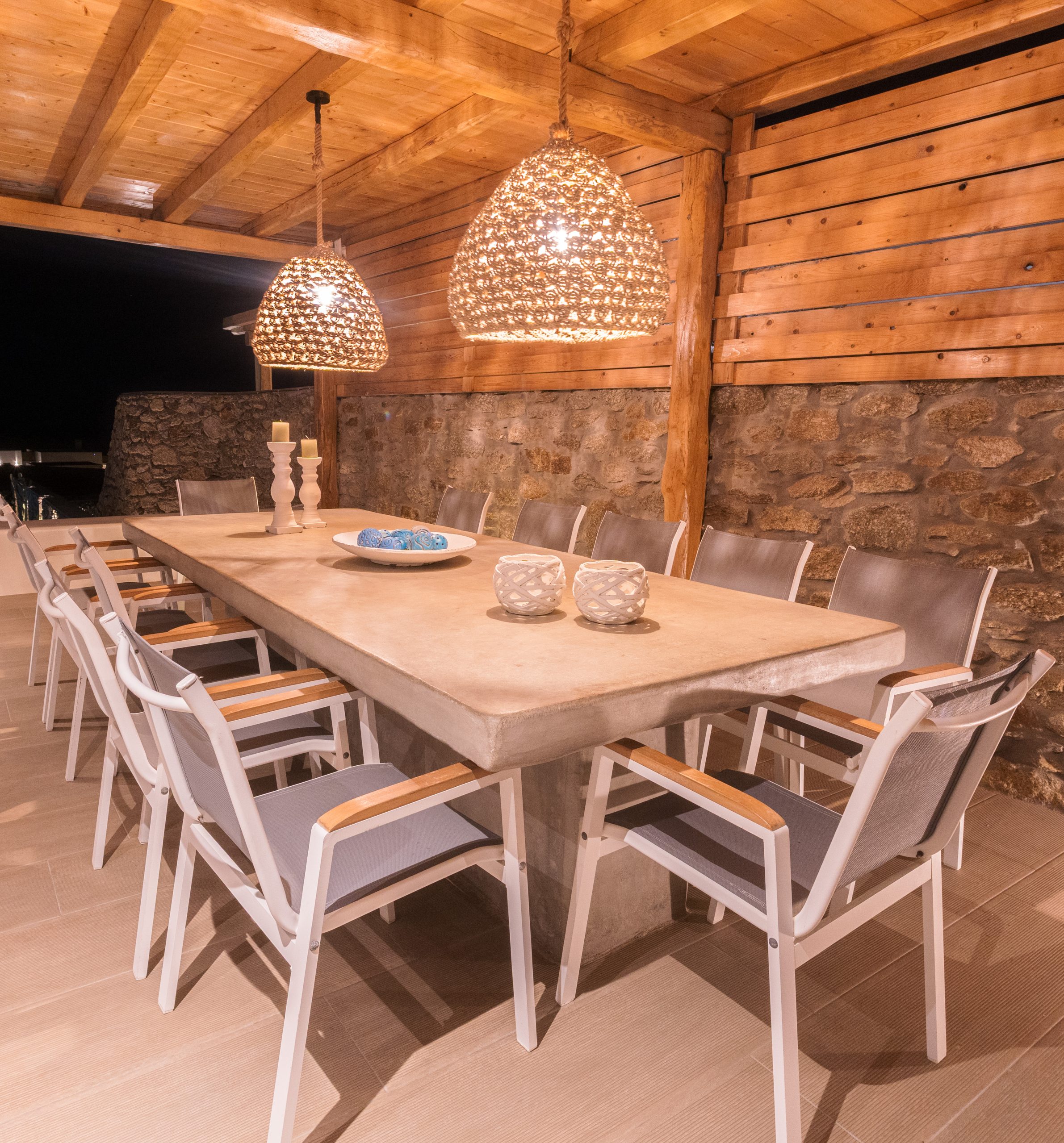 The villa grounds display a rare, for Mykonos island, combination of green flora and an ecological swimming pool that uses no chemicals. It also offer a private parking area that can accommodate comfortably a minimum of 3 cars or other vehicles. The optional 24/7 outsourced transport service also offers to our guests the comfort of enjoying their transfers without the hassle of navigating the congested roads of the island and wasting time to find a parking space. Other optional outsourced services that are available for guests are preparation of meals on a daily basis or cocktail parties and events.